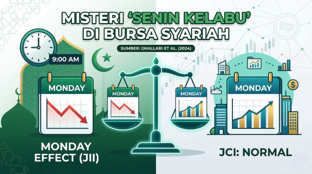 Dunia investasi sering kali dianggap sebagai labirin angka yang dingin dan kaku, namun di baliknya tersimpan dinamika psikologis manusia yang penuh dengan kejutan atau yang biasa disebut sebagai Anomali Pasar. Salah satu fenomena paling menarik di pasar modal Indonesia baru-baru ini diungkap oleh studi Ghallabi et al. (2024), yang menemukan adanya perbedaan perilaku mencolok antara indeks saham konvensional dan syariah. Fokus utamanya terletak pada sebuah misteri bernama Monday Effect, sebuah kecenderungan di mana harga saham sering kali mengalami koreksi atau memberikan imbal hasil negatif tepat saat lonceng pembukaan pasar berbunyi di awal minggu.