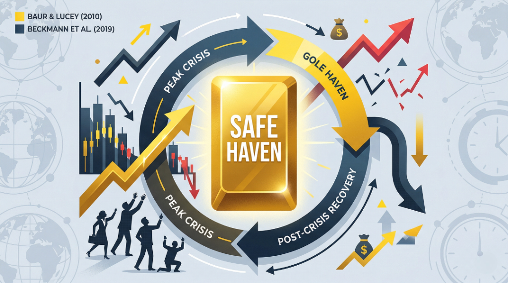 Studi fundamental yang dilakukan oleh Baur dan Lucey dalam jurnal Financial Review (2010) memberikan batasan tegas yang mencerahkan mengenai fungsi emas melalui pembedaan istilah antara hedge (lindung nilai) dan safe haven. Emas dapat dikategorikan sebagai hedge jika secara rata-rata ia tidak memiliki korelasi dengan pergerakan saham, namun ia baru benar-benar menjadi safe haven ketika ia tetap kokoh atau justru menguat di saat pasar sedang mengalami kejatuhan ekstrem. Temuan krusial dari penelitian ini mengungkapkan sisi yang jarang disadari publik, sebagaimana ditegaskan dalam kutipan ilmiah mereka: